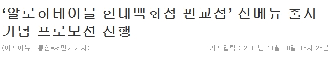 알로하테이블 현대백화점 판교점 신메뉴 출시기념 이벤트 내용이 '아시아뉴스통신' 기사로 홍보되었습니다.